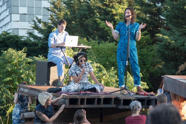 Be sure to wear comfortable shoes for walking on uneven surfaces. Wear clothes appropriate for an outdoor, industrial space. The performers will be doing the dirty work, but you will still be exploring an old shipyard with us. Dress for the summer temperatures but bring an extra layer for when the sun goes down. Please reach out to us with any accessibility questions.